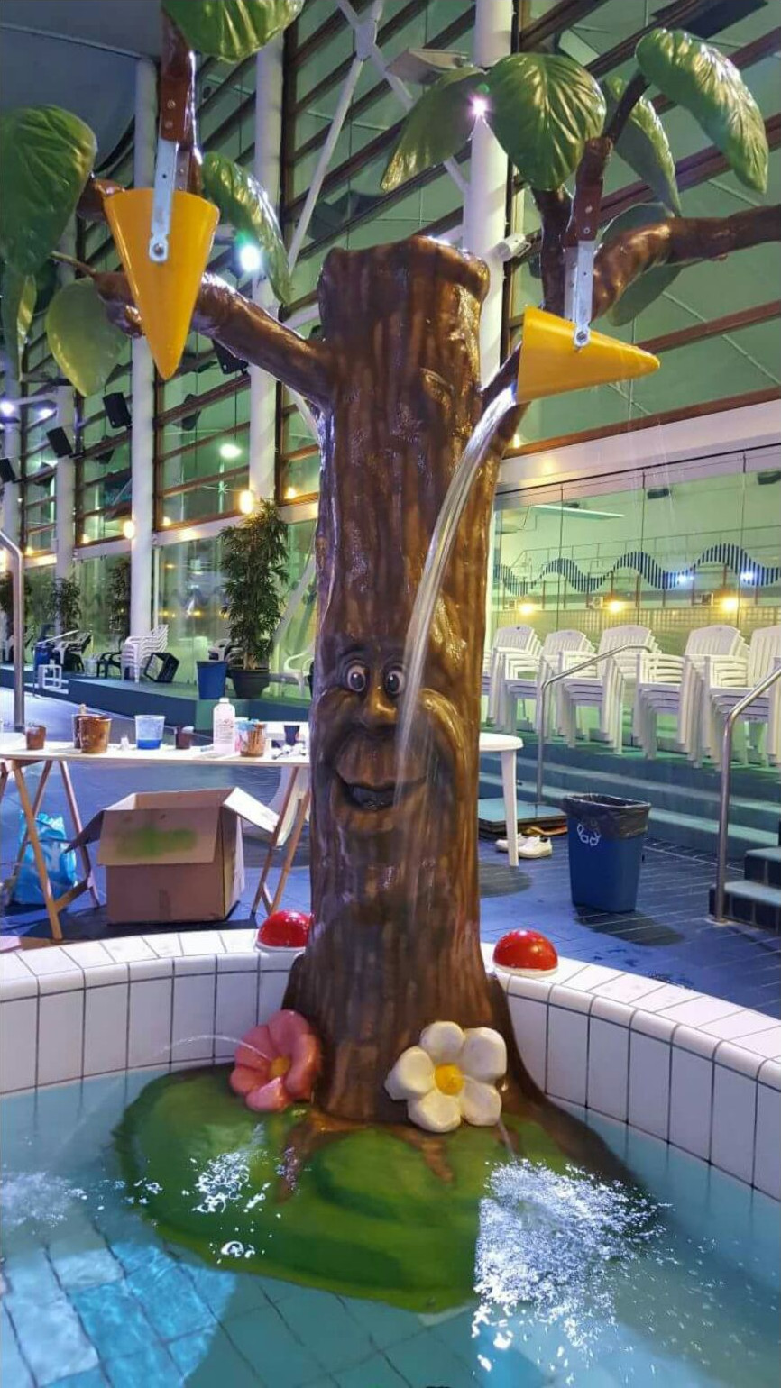 is gespecialiseerd in het maken van polyester themazwembaden. Wij kunnen iets volledig nieuws ontwikkelen, maar ook uw oude bad restylen. Zo kan een peuter-, of kleuterbad omgevormd worden tot een fantasieparadijsje. Dit kan zowel in de natte als in de droge gedeeltes van uw zwembad of waterspeeltuin.