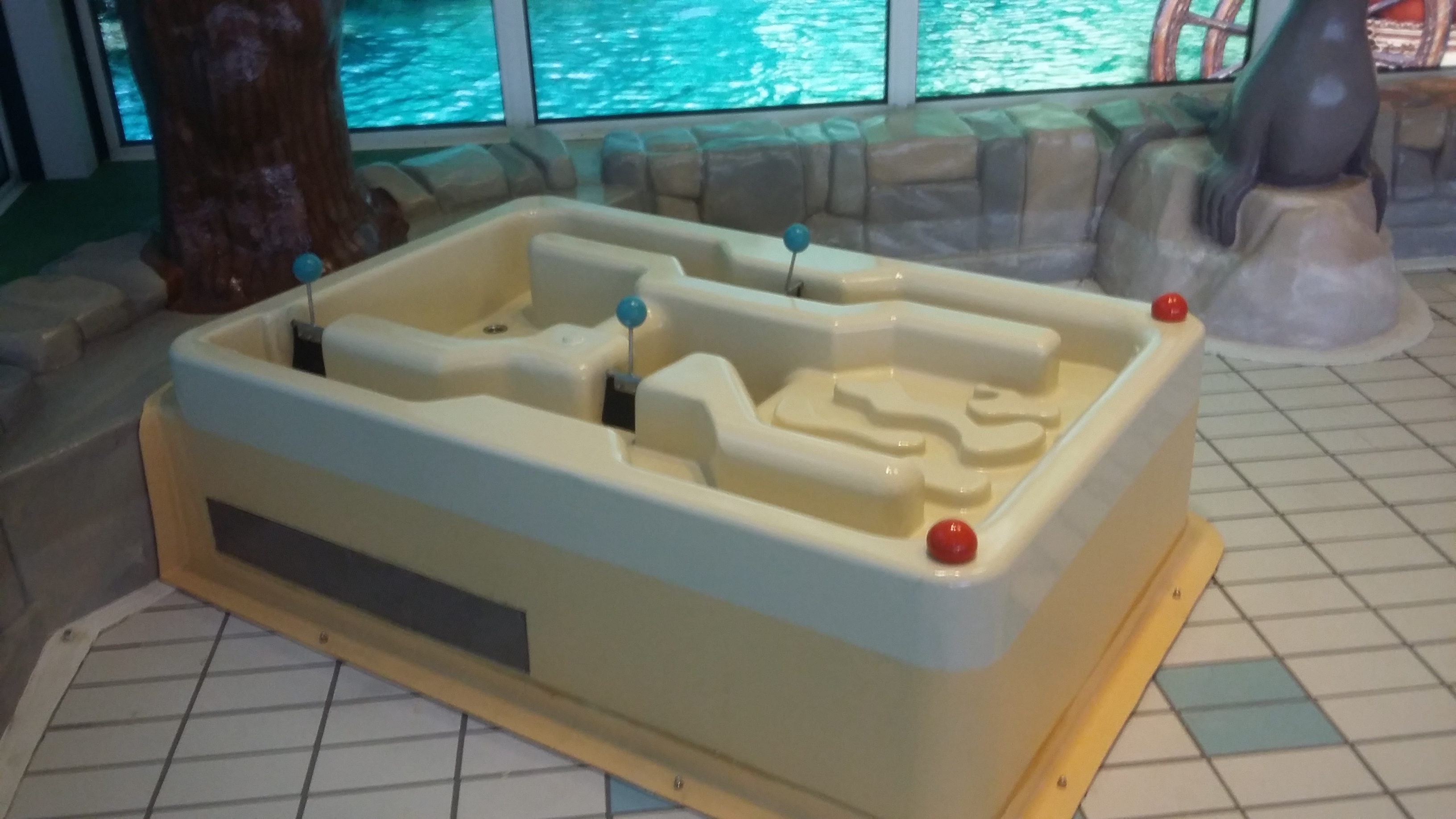 een interactieve watertafel met gootjes en sluisjes Hier kunnen kinderen mee experimenteren en ervaring op doen met de wet van de communicerende vaten. De tafel staat garant voor urenlang speelplezier.